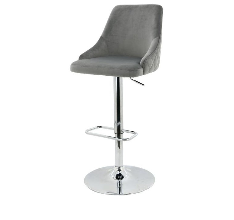 The Oakley Grey Velvet Bar Stool features a foam-filled seat for added comfort. A suitable replacement for normal dining, adding a modern look for a kitchen island. It's adjustable height makes it great for use by all family members and comes in a grey neutral tone for the more classic look.