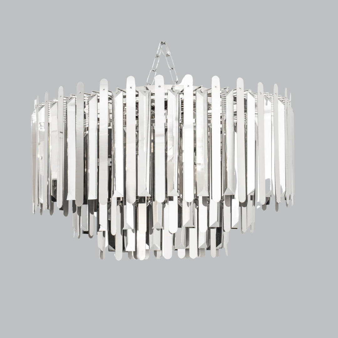 The Electra Flush Fitting in a sleek nickel finish is perfect for adding modern style to any room. Its size ensures ample illumination, making it ideal for large spaces such as living rooms or offices.