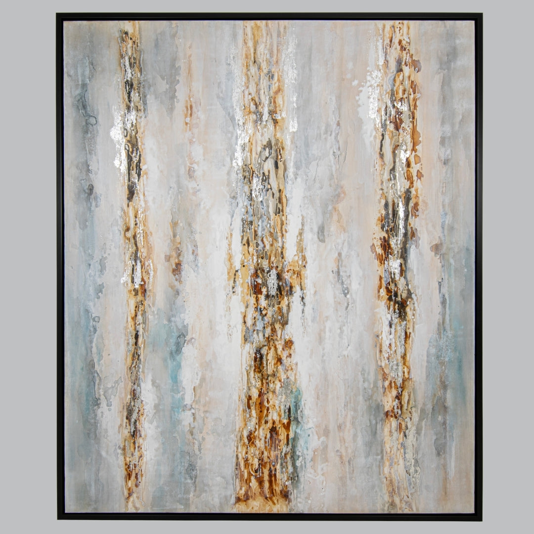 Add a touch of modern artistry to your walls with the Remi Canvas. This abstract painting features a harmonious blend of cool blue hues, gleaming silver accents, and grounding neutral shades. The interplay of color and form creates a visually intriguing and stylish focal point.